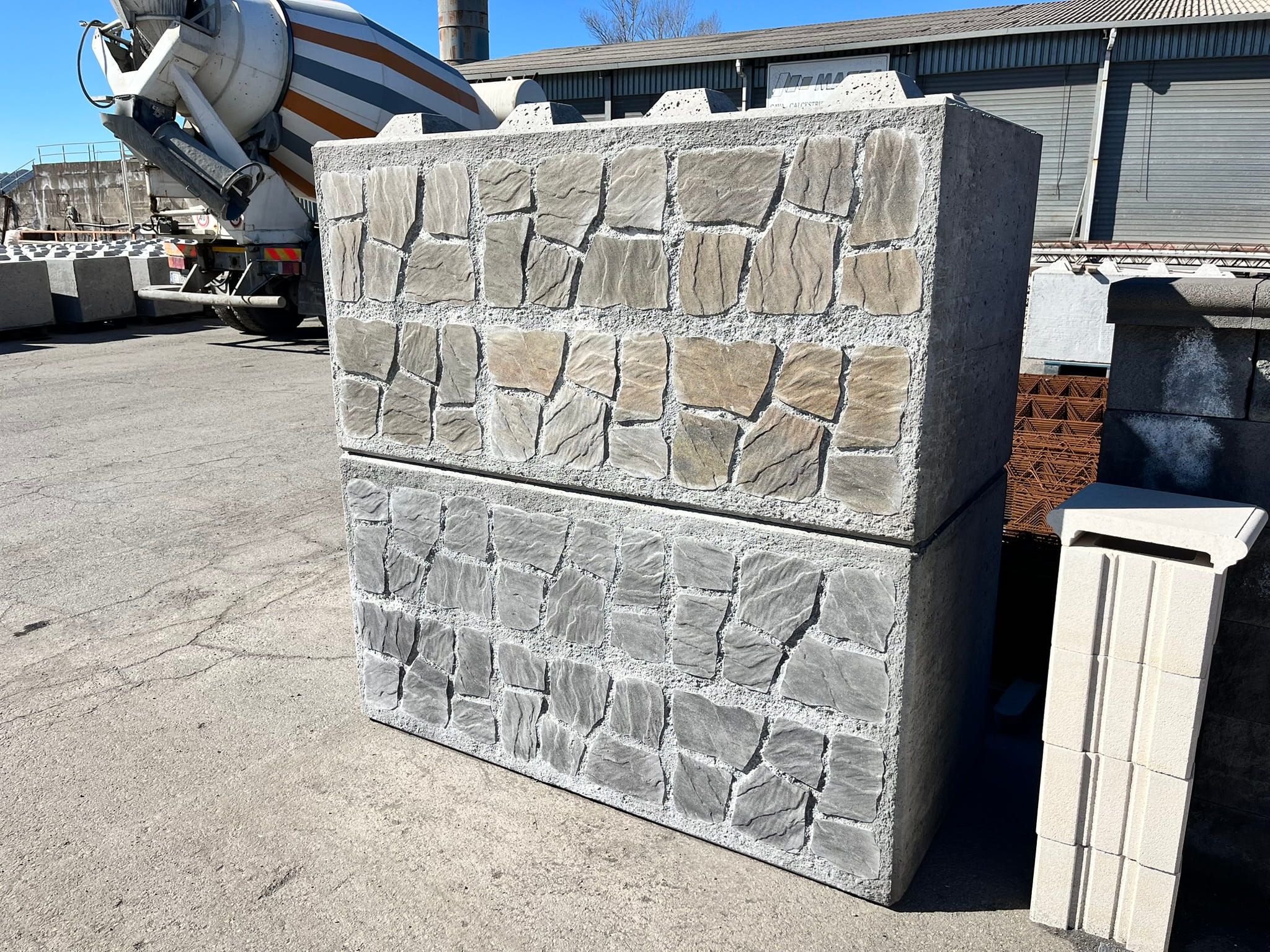 Blocchi in calcestruzzo con sistema ad incastro tipo Lego.